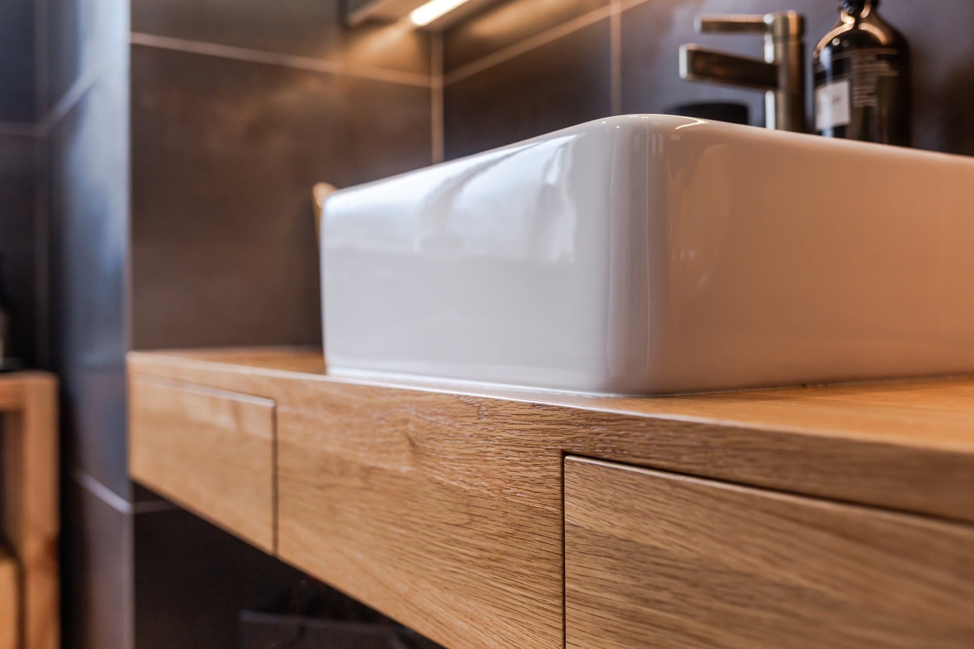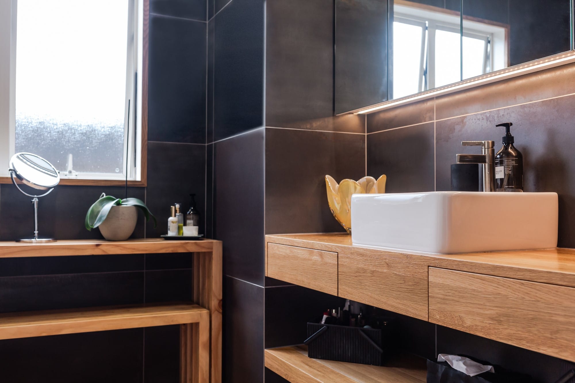 The passion and vision of homeowners Ann and Bruce gave Mano the opportunity to design both their kitchen and bathroom joinery.