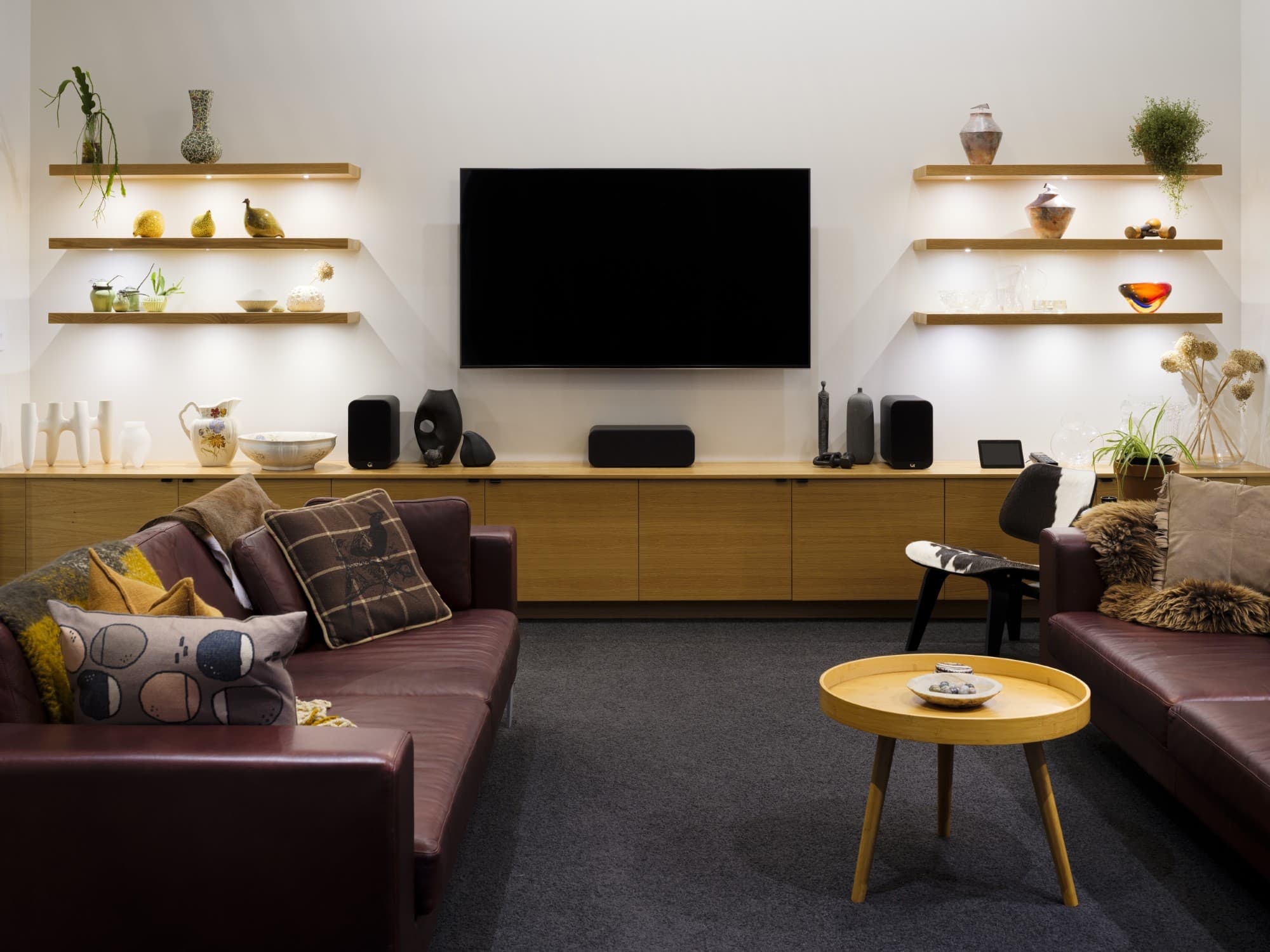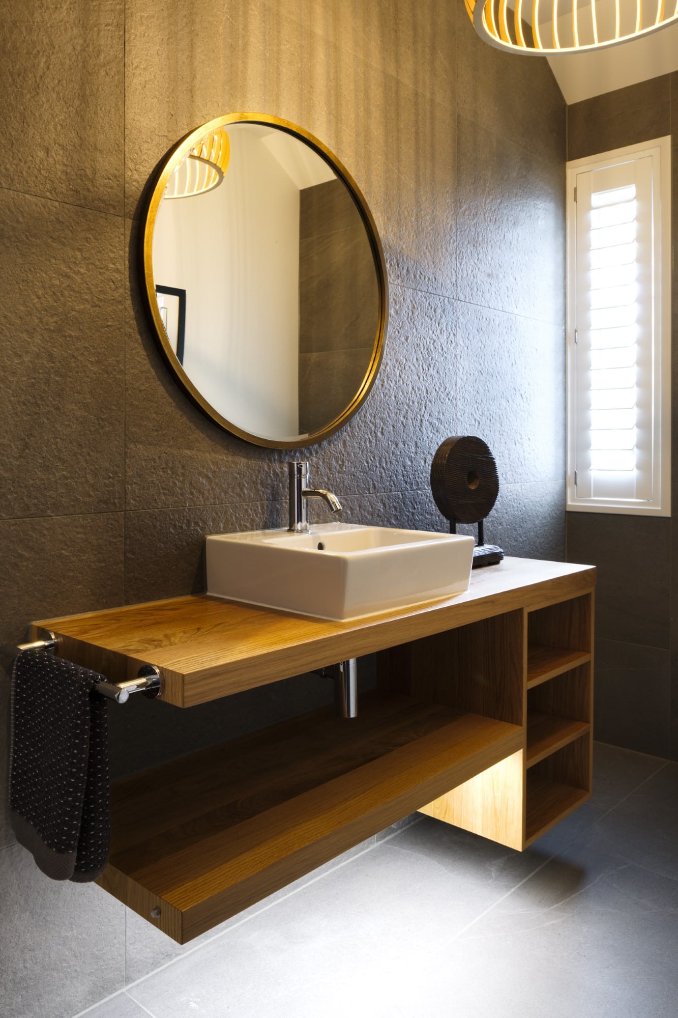 The colour pallet has been transferred to the custom-built entertainment room, library office and bathrooms, so these joinery pieces add to the feeling of timeless design.
