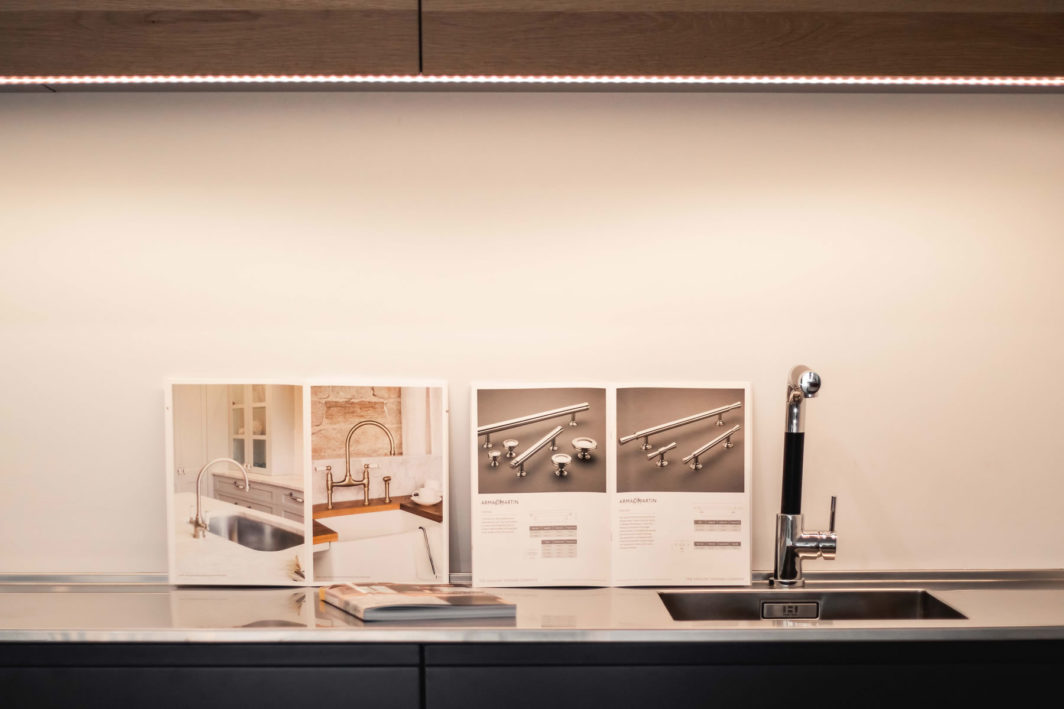 The Mano showroom has hundreds of options to explore: cabinetry, finishes, materials, tiles, drawers, handles, bespoke furniture & lighting, and more.